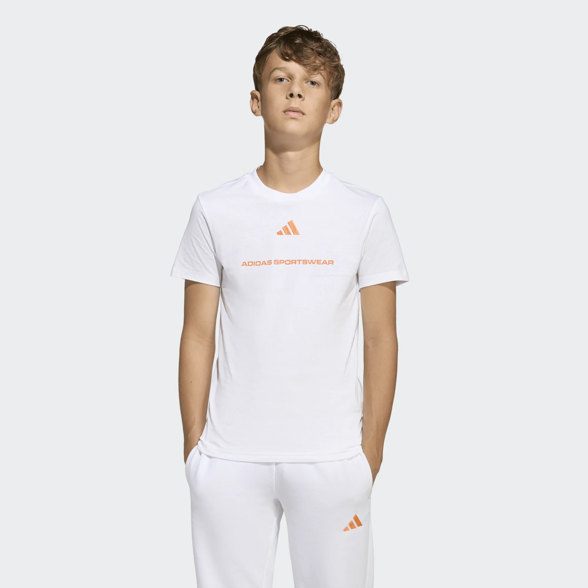 Ανανεώστε το στυλ των μικρών αθλητών με το adidas Boys Slogan Tee (κωδικός: KG5189). Αυτή η λευκή κοντομάνικη μπλούζα ξεχωρίζει για το εντυπωσιακό slogan στο στήθος, προσφέροντας μια μοντέρνα πινελιά στην κλασική αθλητική εμφάνιση.